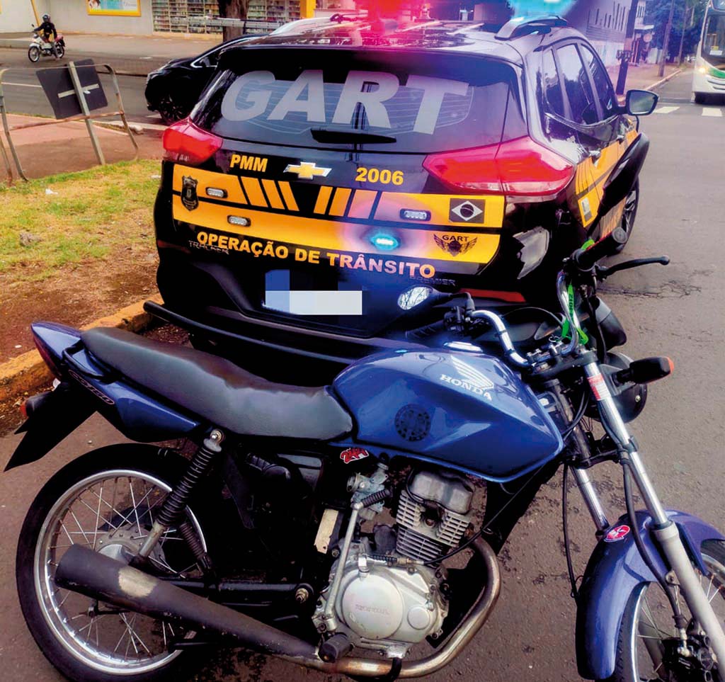Na manhã desta quarta-feira (8/10), durante patrulhamento pela Avenida Gastão Vidigal, no cruzamento com a Avenida Petrônio Portela, agentes do Grupamento de Ações Rápidas de Trânsito (GART), da Secretaria de Segurança de Maringá, identificaram uma motocicleta em situação irregular.