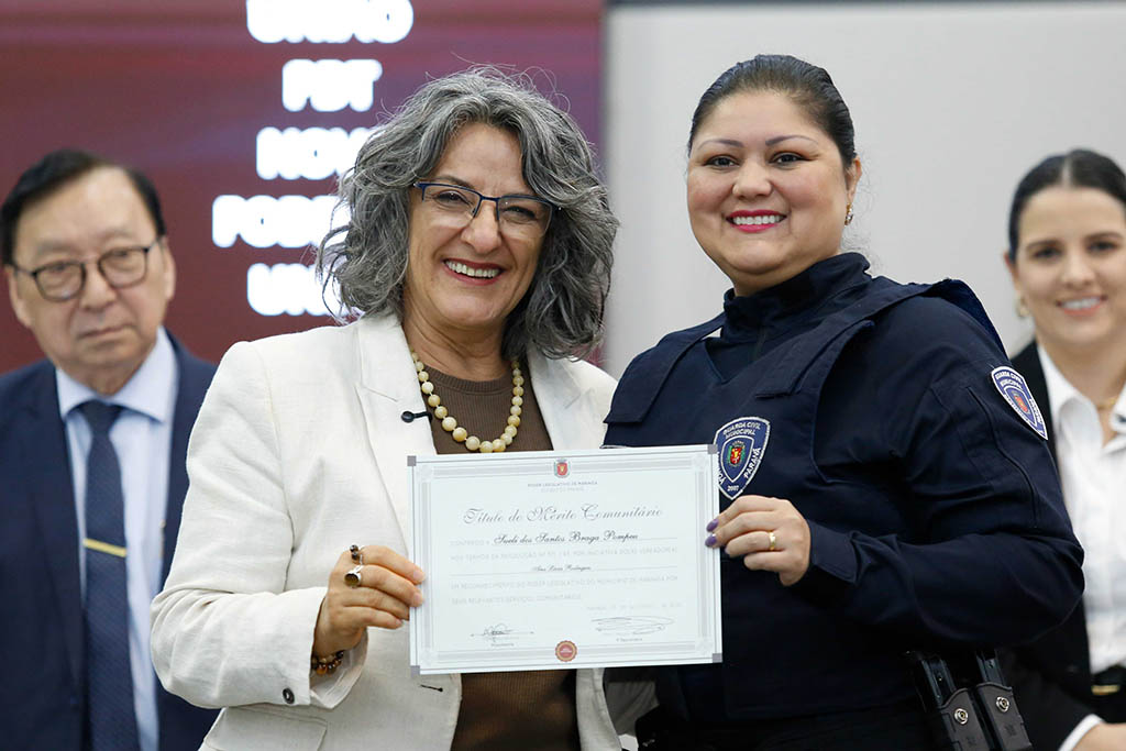 A Câmara de Maringá homenageou na sessão da quinta-feira (25/09), com o título do Mérito Comunitário, os integrantes da Patrulha Maria da Penha da Guarda Civil Municipal. A ação valoriza as iniciativas que promovam a cidadania e a proteção dos direitos humanos