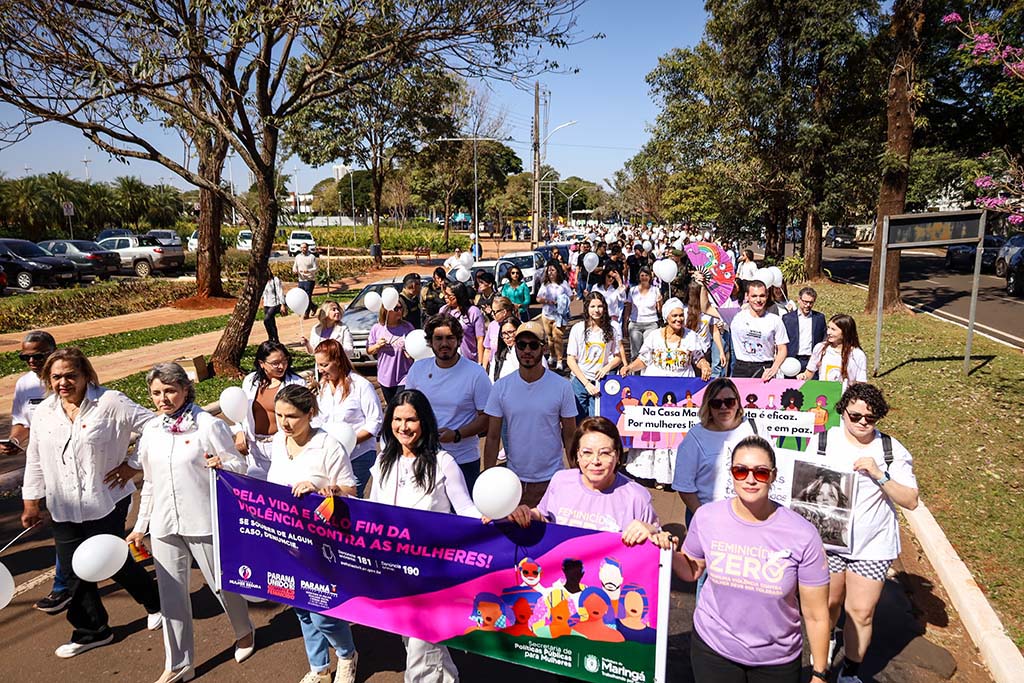Nesta terça-feira, 22 de julho, cerca de 500 pessoas participaram da ‘Caminhada do Meio-Dia’ em Maringá, ação de conscientização sobre o combate ao feminicídio e à violência contra a mulher. A mobilização foi realizada pela Prefeitura, por meio da Secretaria de Políticas Públicas para Mulheres, e faz parte da campanha estadual promovida pela Secretaria da Mulher, Igualdade Racial e Pessoa Idosa (Semipi). No Paraná, cerca de 200 municípios aderiram à mobilização.