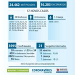Desde o início da pandemia, já são 3.639 casos confirmados, sendo que 56 estão internados (34 em UTI e 22 em Enfermarias), 650 em isolamento domiciliar, 2.878 casos encerrados, 55 óbitos por Covid-19 e 4.609 casos suspeitos em acompanhamento.