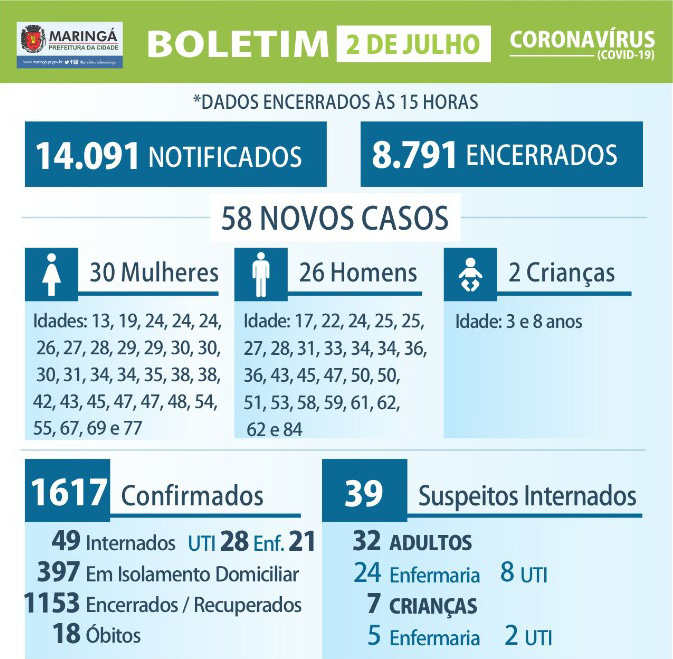 Boletim divulgado pela Diretoria de Comunicação da Prefeitura Municipal de Maringá.