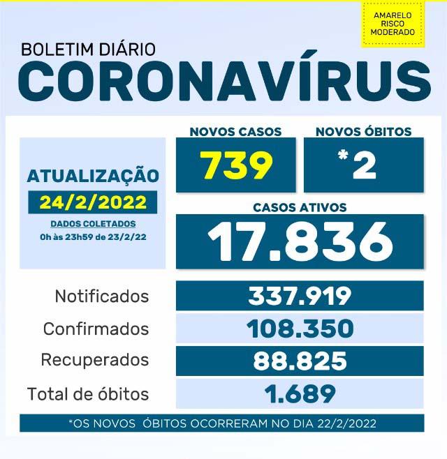 Nesta quinta-feira, 24 de fevereiro, a Secretaria de Saúde da Prefeitura de Maringá informa que foram notificados 739 novos casos de Covid-19 e 2 óbitos nas últimas 24 horas.
