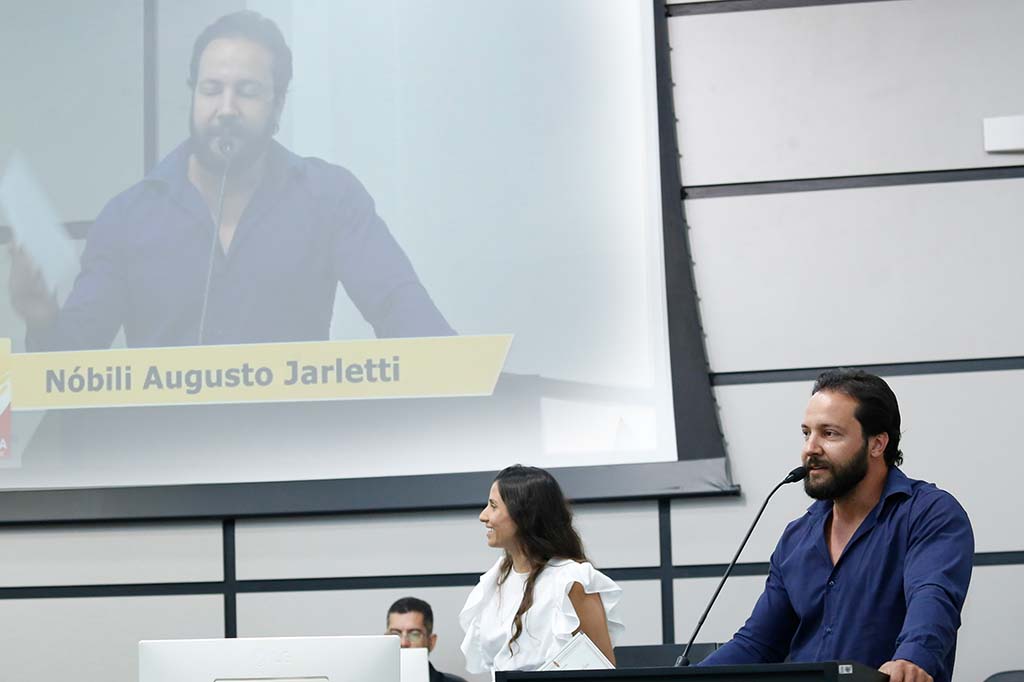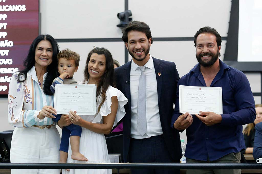 Na sessão da quinta-feira (4/9), o casal Andréia Pinheiro-Nóbili Augusto Jarletti foi homenageado com o Título do Mérito Comunitário