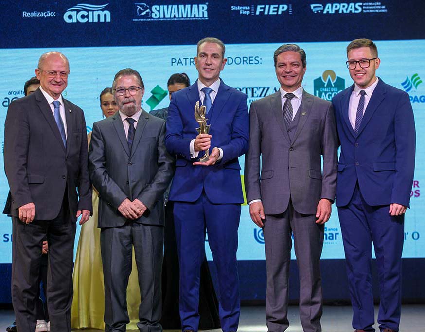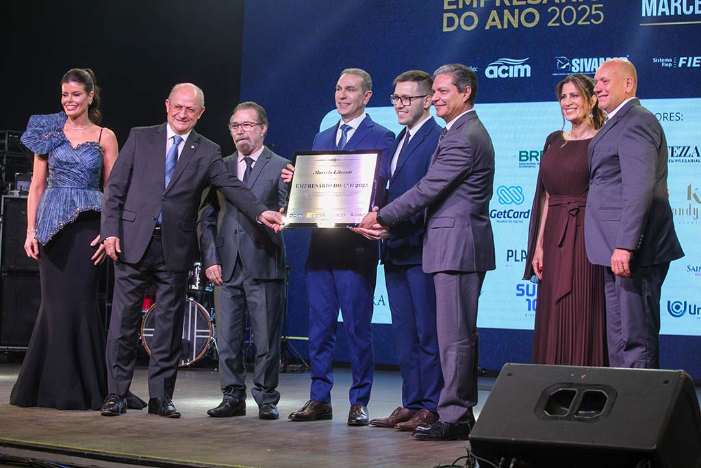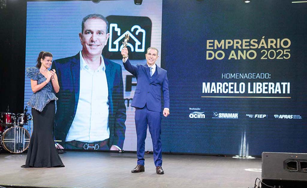 A entrega do Prêmio Empresário do Ano 2025 para Marcelo Liberati, fundador e CEO da Euro Condomínios, reuniu mais de 400 pessoas na sexta-feira (22/08), no Vivaro Eventos. Entre os participantes estiveram autoridades, lideranças, familiares e amigos do homenageado, que também é sócio da Mondonex, especializada no compartilhamento de imóveis e embarcações de lazer. A premiação anual é realizada pela Acim, Sivamar, Apras e Fiep.
