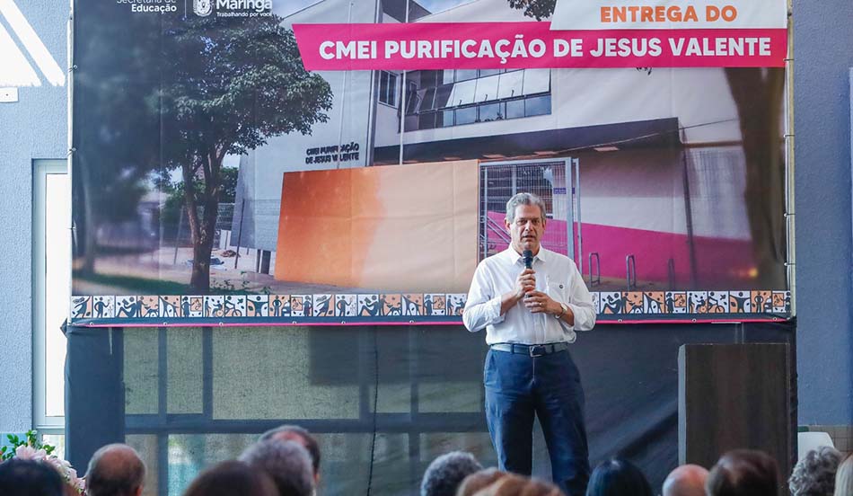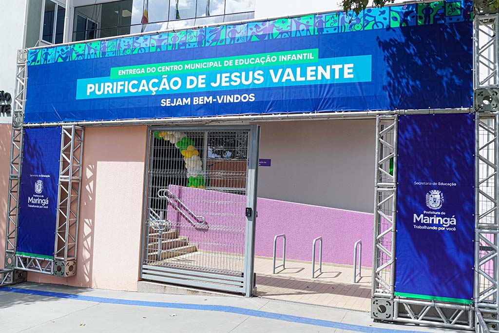 A Prefeitura de Maringá, por meio das secretarias de Educação e de Obras Públicas, inaugurou na sexta-feira (20), o novo Centro Municipal de Educação Infantil (Cmei) Purificação de Jesus Valente, localizado no Jardim Itália II. Com investimento de mais de R$15 milhões, a nova unidade possui 3.775,95 metros quadrados de área construída e é quase três vezes maior que o antigo prédio, que foi demolido para dar lugar à nova estrutura. O espaço foi projetado para atender até 375 crianças em período integral.