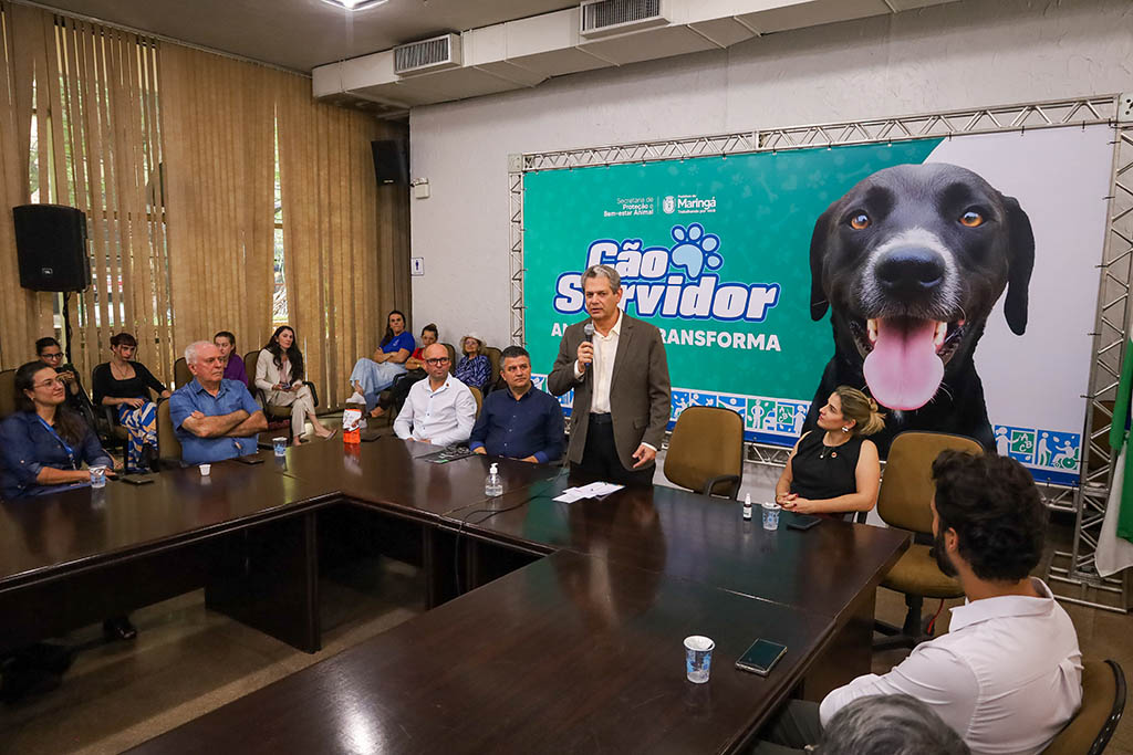O evento de lançamento ocorreu no Paço Municipal e reuniu autoridades e representantes de organizações da causa animal. O Programa ‘Cão Servidor’ tem como objetivo promover o bem-estar emocional, estimular a socialização e fortalecer vínculos humanos por meio do contato afetivo entre pessoas e cães. O animal, que foi resgatado em condições de maus-tratos, realizará atividades com idosos, crianças e pessoas neurodivergentes atendidas em espaços públicos do município.