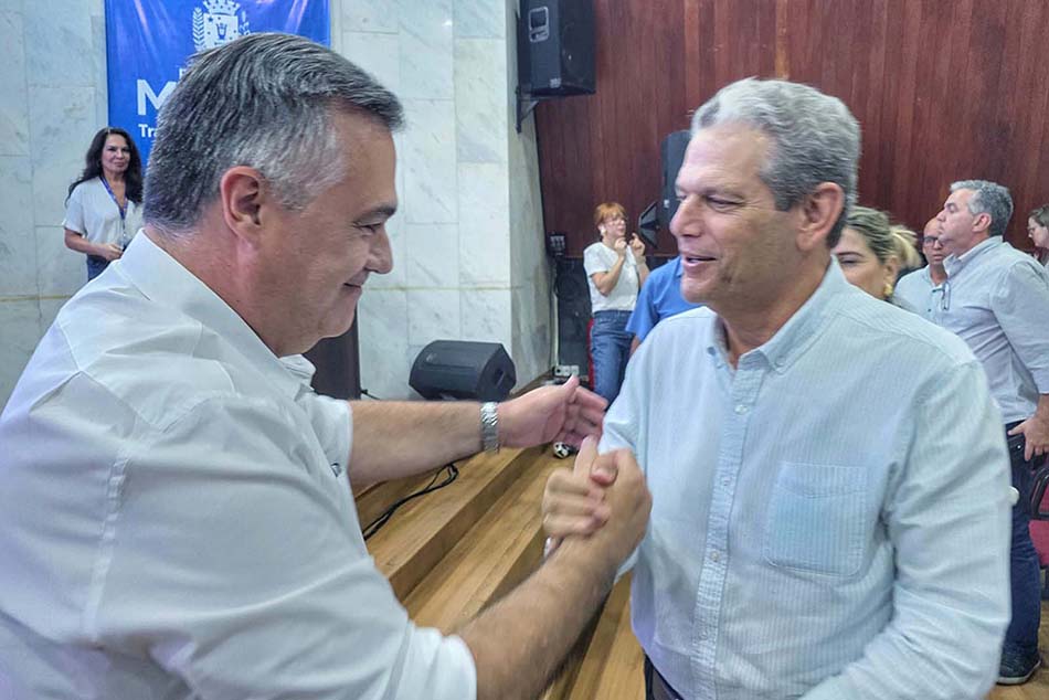 Secretário de Estado de Saúde, Beto Preto, recebe cumprimentos e agradecimentos do prefeito de Maringá, Silvio Barros
