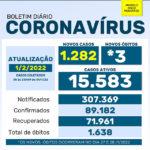 Na terça-feira, 1º de fevereiro, a Secretaria de Saúde da Prefeitura de Maringá informa que foram notificados 1.282 casos de coronavírus e 3 óbitos em 24 horas.