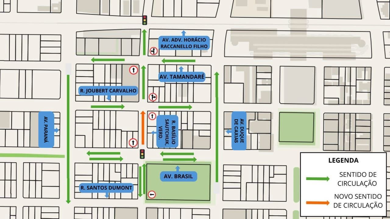 A Prefeitura de Maringá, por meio da Secretaria de Mobilidade Urbana (Semob), reorganizou o fluxo de veículos na região central de Maringá, após a conclusão das obras na Avenida São Paulo, que foi totalmente liberada na quinta-feira (23). Medidas em vias importantes da região central, que já estavam previstas, foram antecipadas devido às obras.