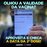 Confira na carteira de vacinação se já chegou o momento de receber a dose de reforço. É necessário apresentar documento pessoal com foto e carteira de vacinação. O município aguarda novo lote de vacina para seguir com a vacinação da 1ª dose da população geral.