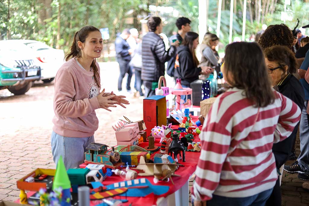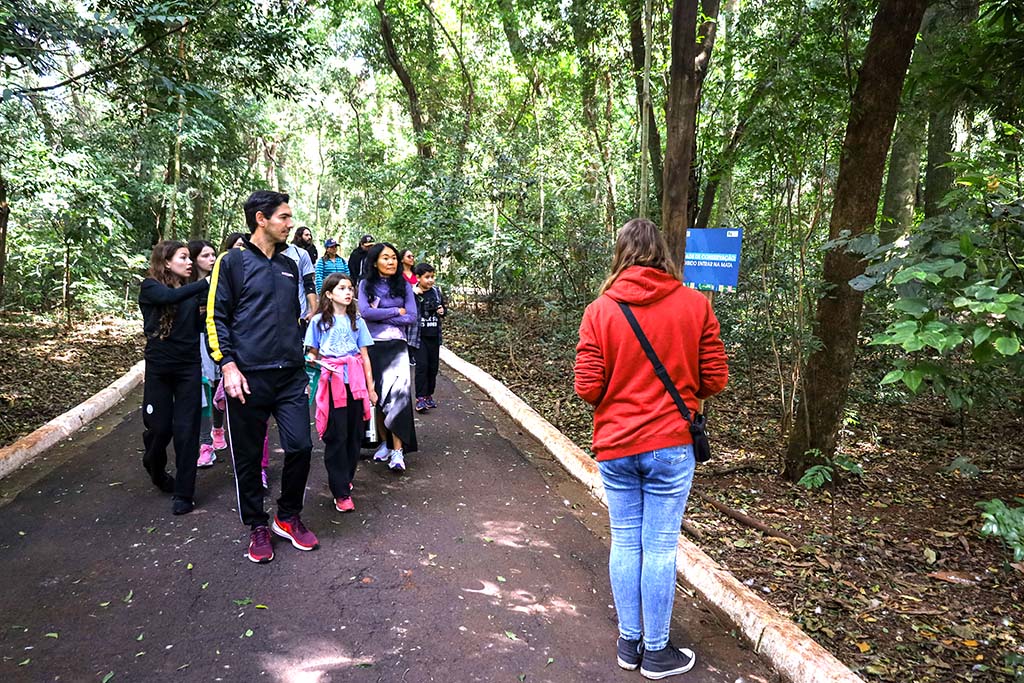 Durante a ação, equipes do Instituto Ambiental de Maringá realizaram a exposição de projetos sustentáveis e promoveram uma trilha interpretativa pelo Parque do Ingá a partir de elementos da paisagem, flora e fauna do local.