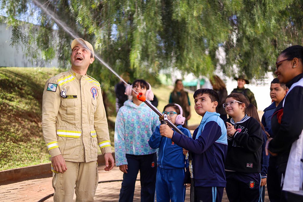 Equipe do Corpo de Bombeiros de Maringá conscientizou crianças sobre medidas preventivas de combate a incêndios