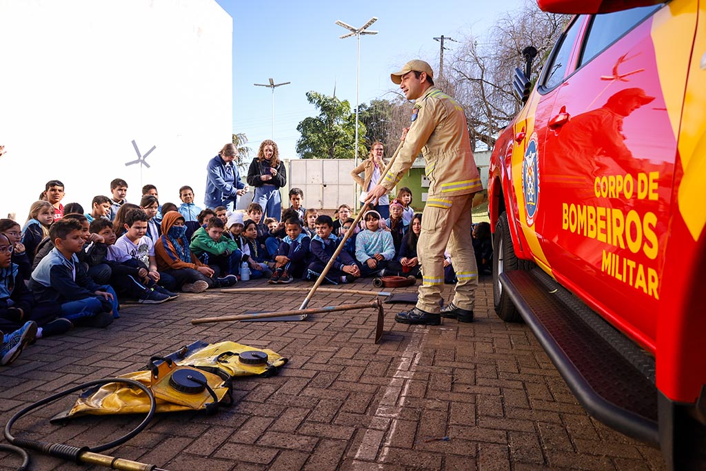 No ‘Agosto Cinza’, alunos da rede municipal de ensino participam de ação sobre combate a incêndios