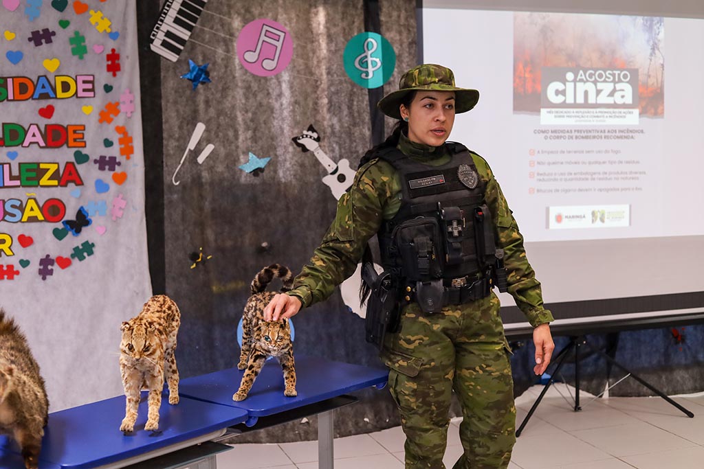 A policial Militar Ambiental, soldado Kesley, destacou a importância dos alunos conhecerem os cuidados com os animais silvestres e a importância da preservação das áreas verdes. Para o cabo Lucas, do Corpo de Bombeiros, é fundamental que as crianças sejam orientadas sobre as medidas de prevenção para a conscientização dos pais e responsáveis.