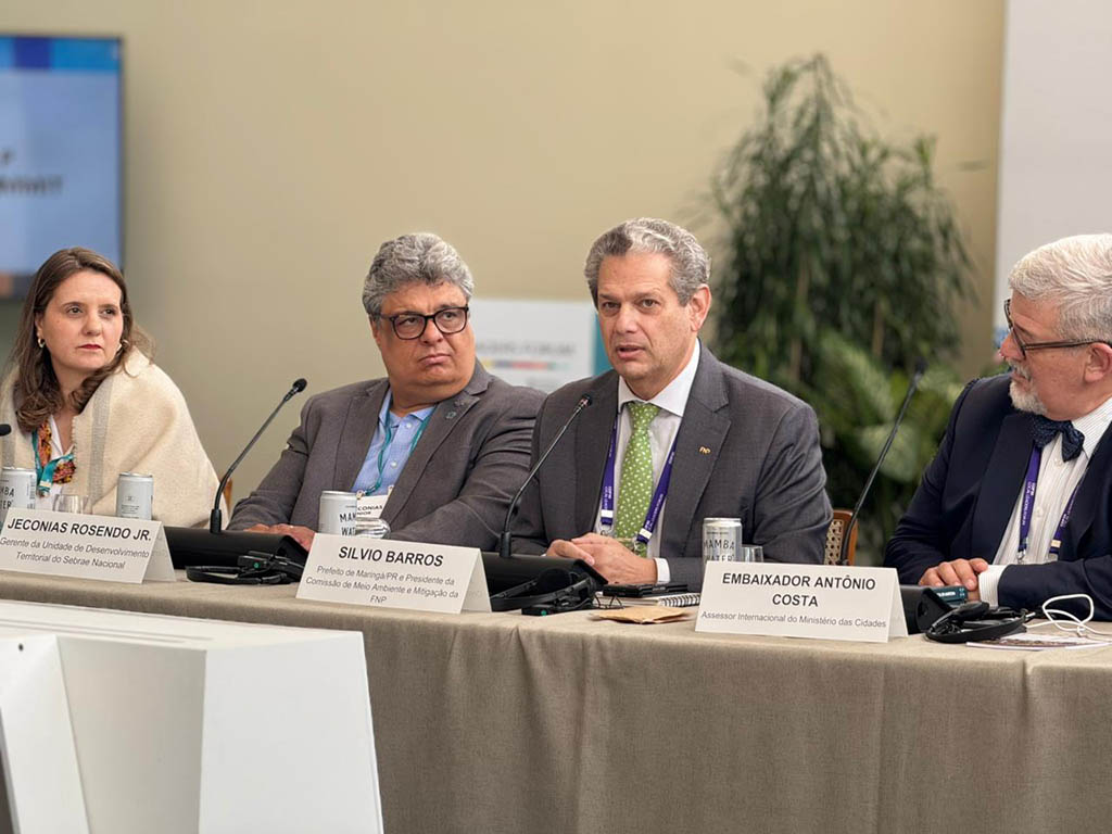O prefeito Silvio Barros, que também é presidente da Comissão de Meio Ambiente e Mitigação da FNP, participa nesta segunda, 3, do painel ‘Governança Climática Multinível e Articulação Setorial: caminhos para um Desenvolvimento Territorial Resiliente’. No painel, ele apresentará estratégias e ações de governança climática que envolvem municípios, estados e União, além da articulação com setores estratégicos da economia. Também participa deste painel o gerente de Desenvolvimento Territorial do Sebrae Nacional, Jeconias Rosendo Jr.