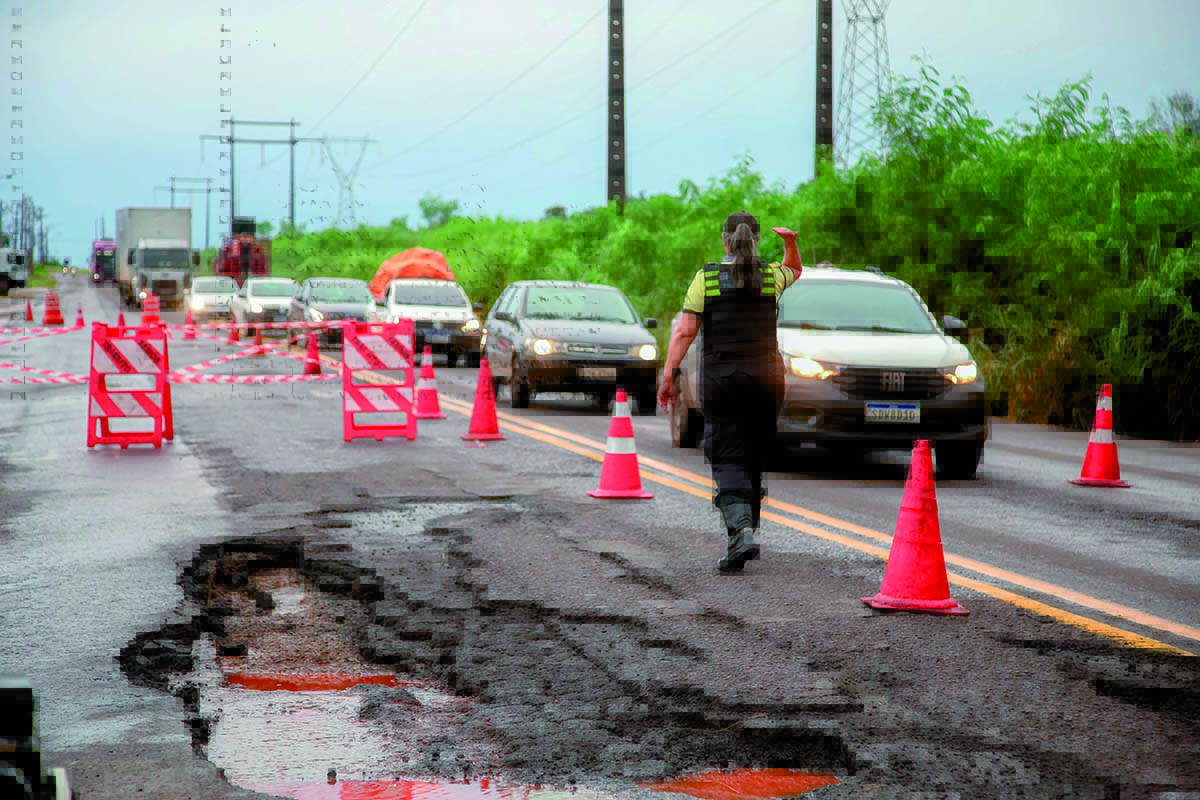 O pavimento asfáltico do trecho, nas proximidades da rotatória da Avenida Joaquim Duarte Moleirinho (foto), foi danificado devido ao grande volume de água da chuva. De acordo com o Simepar, foram registrados 40 milímetros de chuva em menos de uma hora.