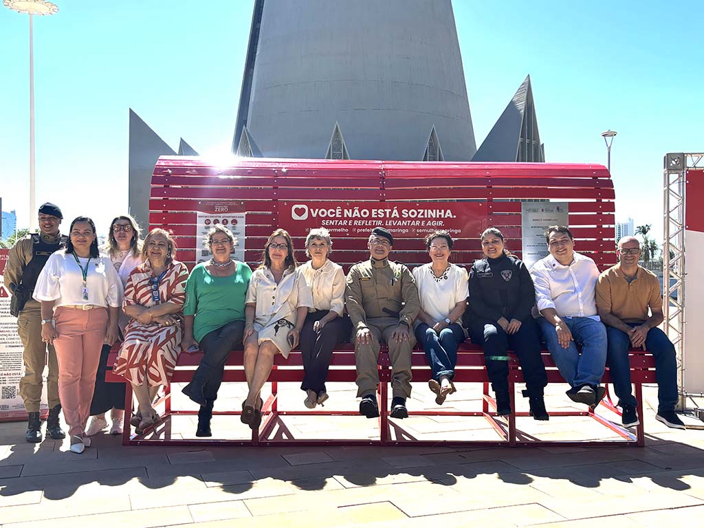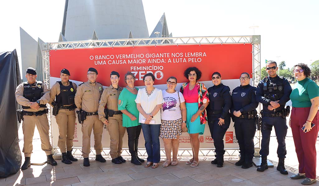A Prefeitura de Maringá, por meio da Secretaria de Políticas Públicas para Mulheres (Semulher), inaugurou naquarta-feira (26) o Banco Vermelho na Praça da Catedral. Instalado em um dos locais de maior circulação da cidade, a intervenção convida a população a refletir e agir em defesa das mulheres. O equipamento integra o circuito oficial do Instituto Banco Vermelho, reforçando a campanha nacional ‘Feminicídio Zero’. Maringá é o primeiro município do Paraná a aderir ao projeto e o segundo da região Sul.