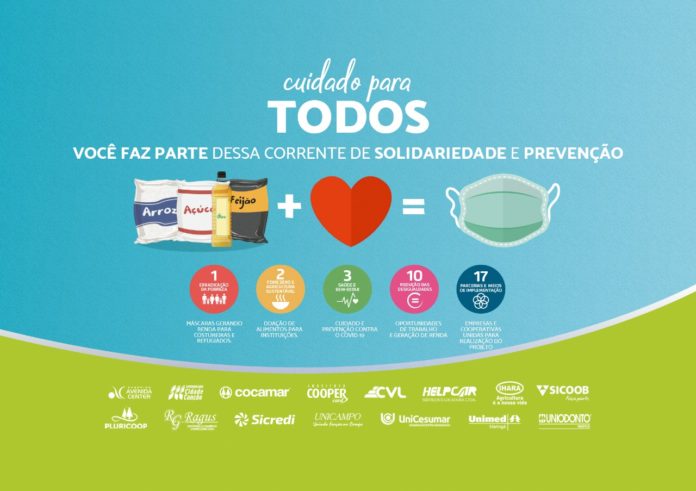 Trata-se de uma iniciativa de sete cooperativas da cidade e que envolve 60 voluntários. Divididos em turnos, os voluntários abordarão os clientes nesses pontos de troca, convidando-os a fazer a doação de alimentos em troca de máscaras. E em época de pandemia, tudo será feito de forma segura: os voluntários usarão máscaras face shield, luvas descartáveis e álcool em gel. A iniciativa envolve empresas locais e as cooperativas Sicredi União PR/SP, Cocamar, Sicoob, Unimed, Uniodonto, Unicampo e Pluricoop.