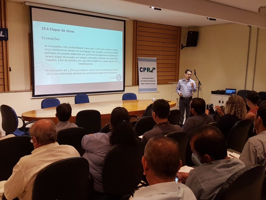 A audiência pública contou com a presença do Auditor Fiscal da Subsecretaria de Inspeção do Trabalho do Paraná, Rubens Patruni. Ele abordou todos os tópicos da nova redação da NR-18, tirou as dúvidas dos participantes e coletou sugestões de melhorias que serão levadas para apreciação dos membros do governo.