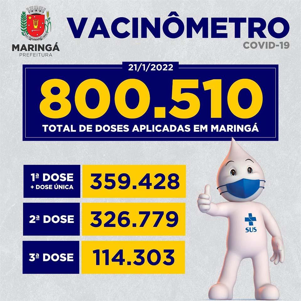 Maringá tem 359.428 pessoas vacinadas com pelo menos uma dose da vacina contra Covid-19. São 326.779 vacinados com a 2ª dose e 114.303 com a 3ª dose.
