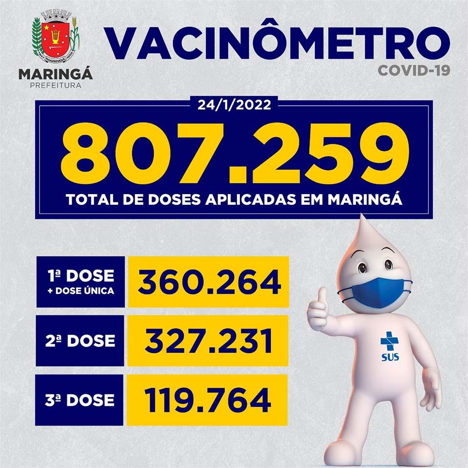 A Secretaria de Saúde da Prefeitura de Maringá vacinou nessa sexta-feira, 21 de janeiro, 836 pessoas com a 1ª dose da vacina contra a Covid-19 (50 adolescentes entre 12 e 17 anos e 722 crianças de 5 a 11 anos); 452 pessoas com a 2ª dose (229 adolescentes entre 12 e 17 anos), e 5.461 pessoas com a 3ª dose.